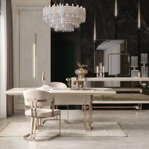 - تصميم خالد: خطوط حديثة ولمسات كلاسيكية تجعل غرفة الطعام أنيقة طوال الوقت.