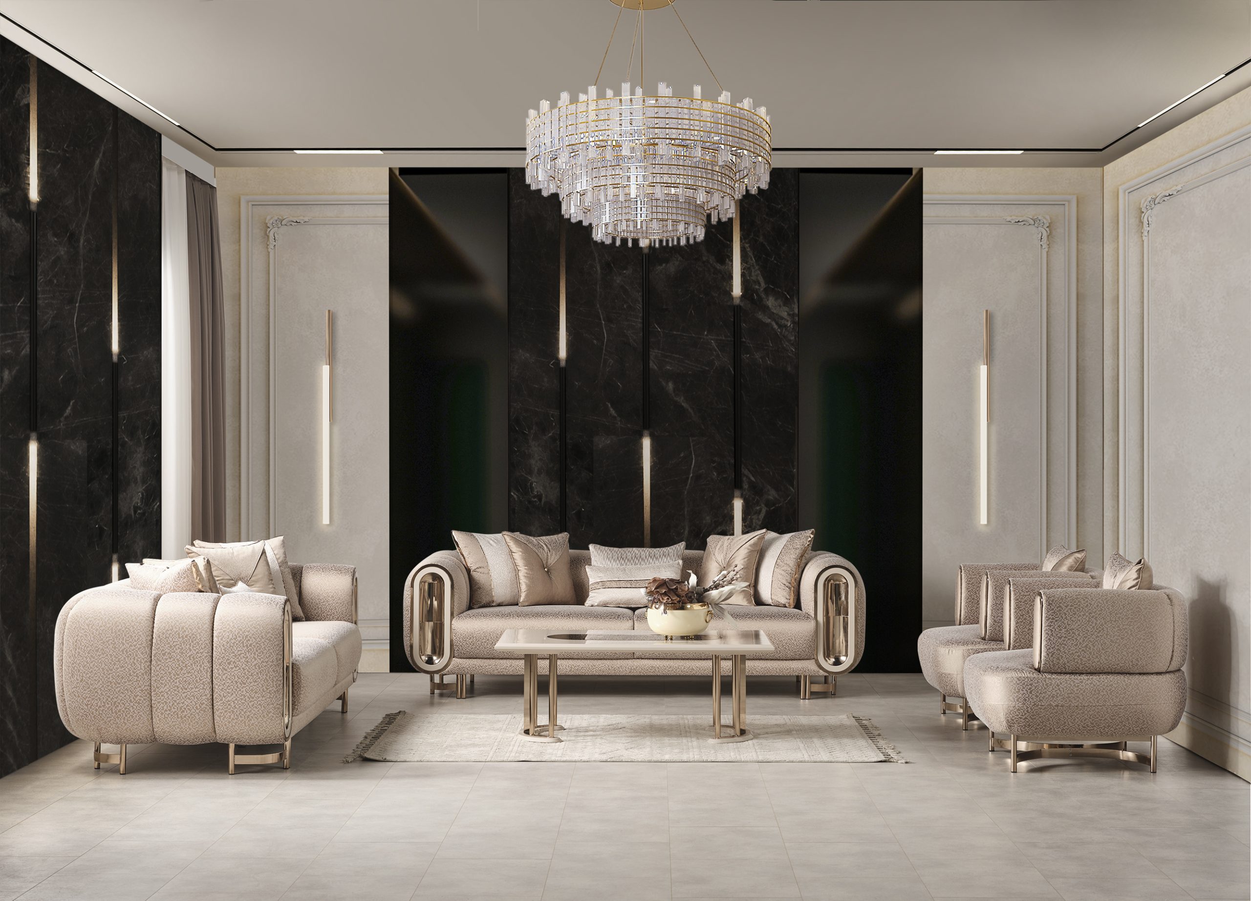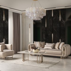 • تصميم خالد: خطوط حديثة ولمسات كلاسيكية تجعل الصالون أنيق طوال الوقت.