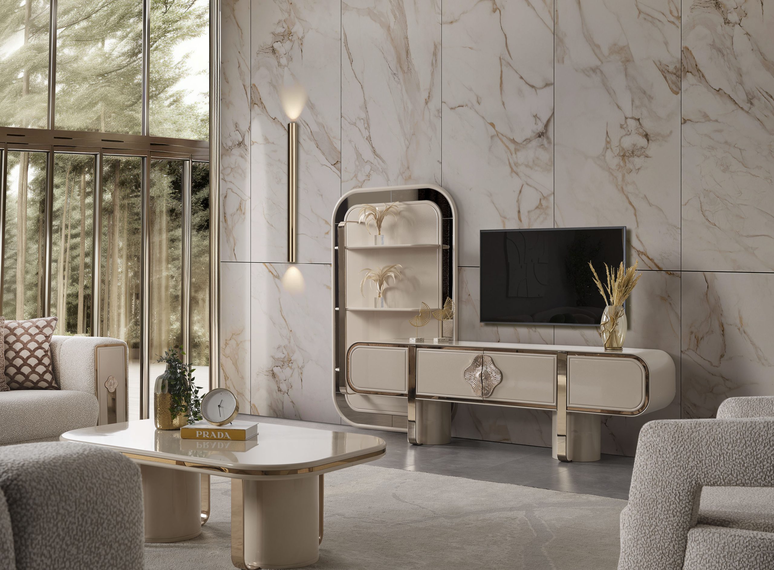 - تصميم خالد: خطوط حديثة ولمسات كلاسيكية تحافظ على أناقة الصالون على المدى الطويل.